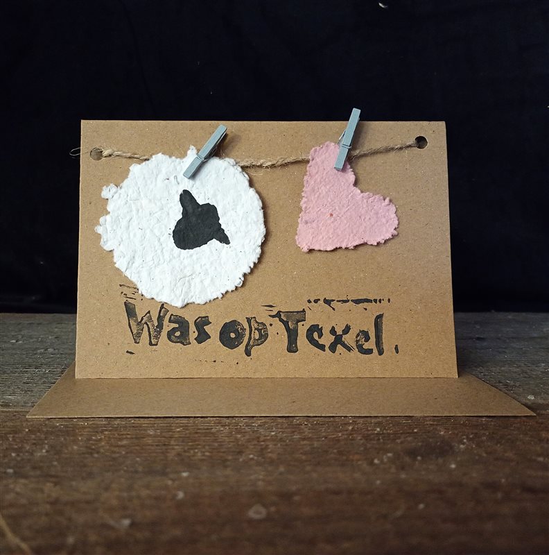 Leuke kaart met een schaapje en hartje aan de waslijn.